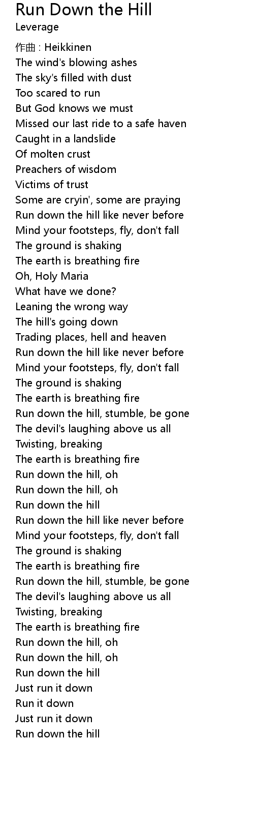 | Run down the hill, stumble, be gone | |