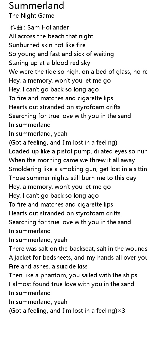 | [03:00.857] | In summerland, yeah |