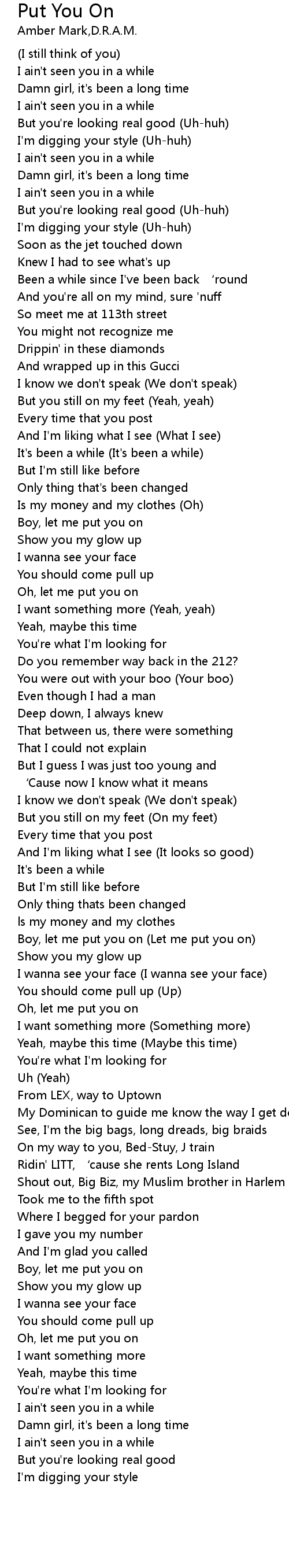 | [02:14.54] | Boy, let me put you on (Let me put you on) |
