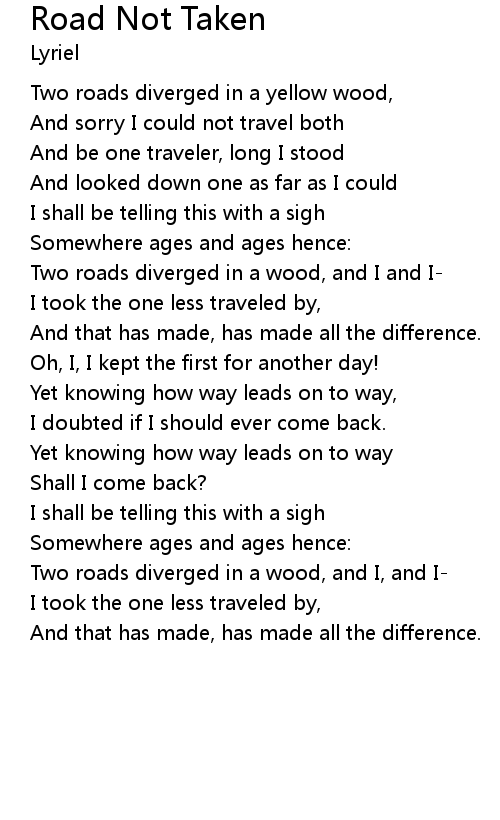 | Two roads diverged in a wood, and I and I- | |