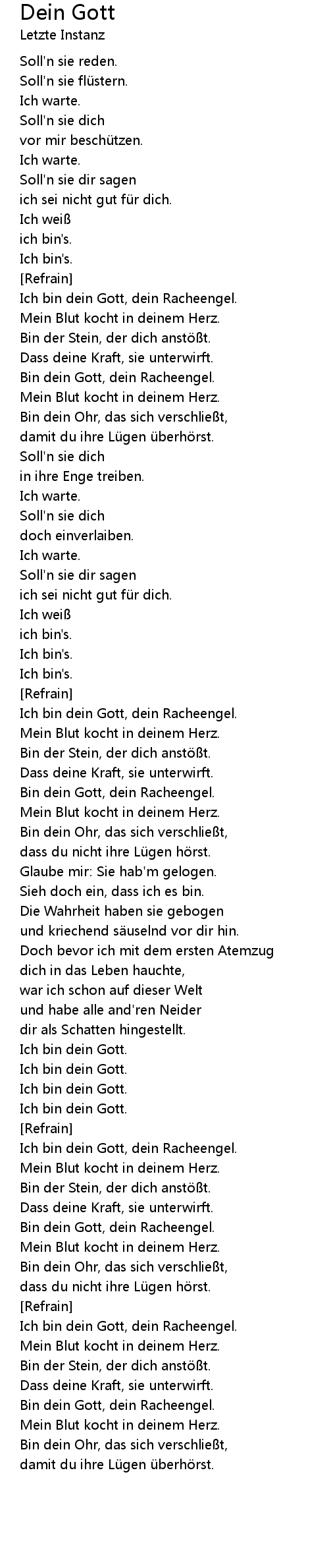 | Bin dein Gott, dein Racheengel. | |