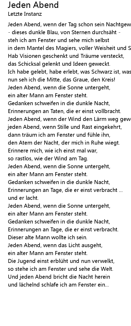 | Jeden Abend, wenn der Wind den L rm weg geweht, | |