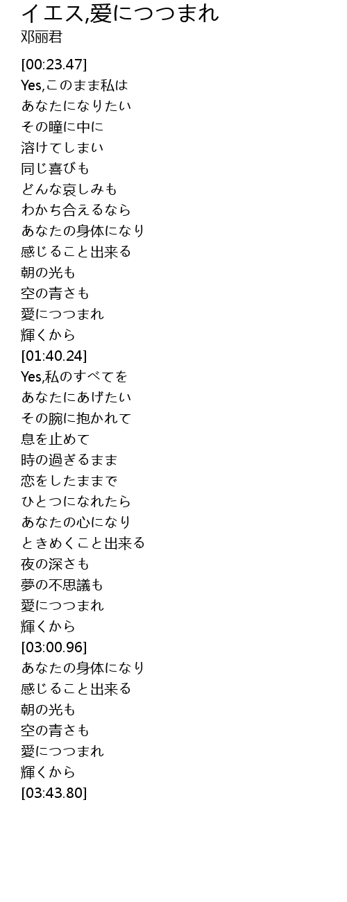 | [01:48.16] | Yes,私のすべてを |