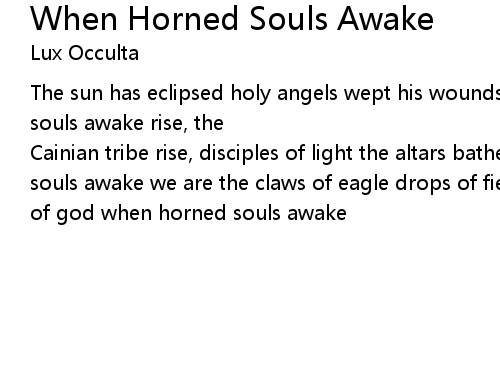 | Cainian tribe rise, disciples of light the altars bathed in blood when horned souls awake we are the claws of eagle drops of fiery rain so tremble you sheep of god when horned souls awake |