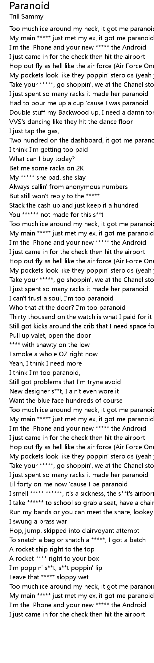 Had to pour me up a cup 'cause I was paranoid |