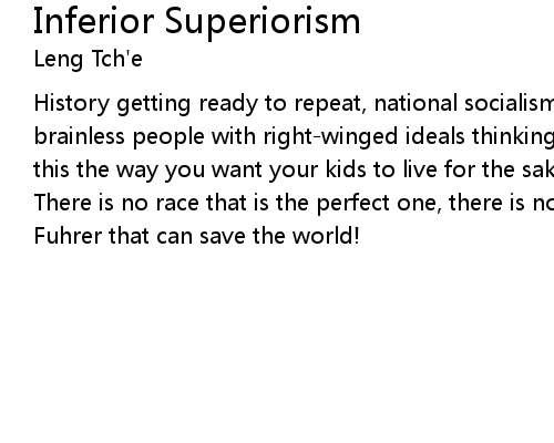 | History getting ready to repeat, national socialism is leading to fascism brainless people with right-winged ideals thinking that they are superior is this the way you want your kids to live for the sake of your utopia? | |