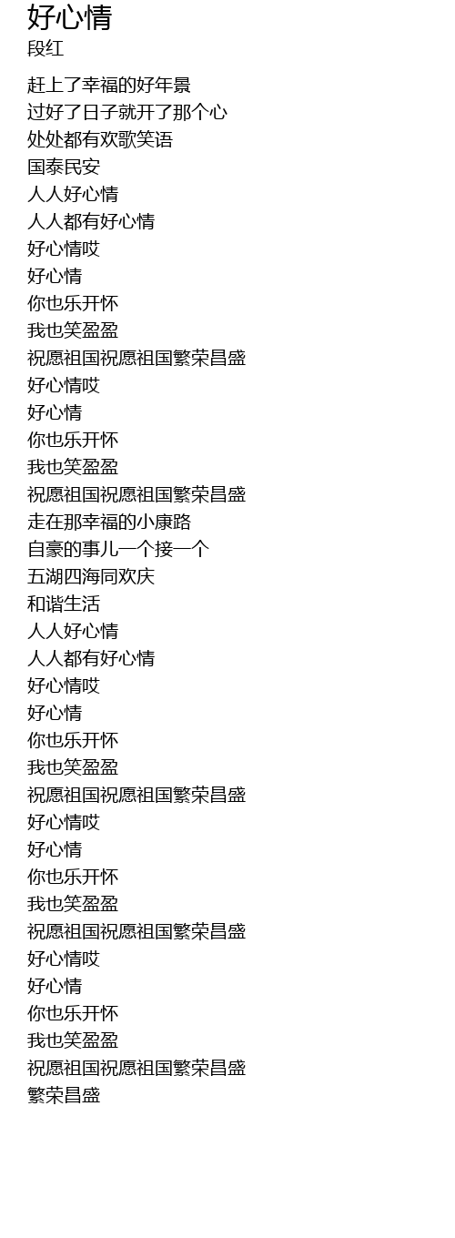 | [01:16.970] | 祝愿祖国祝愿祖国繁荣昌盛 |