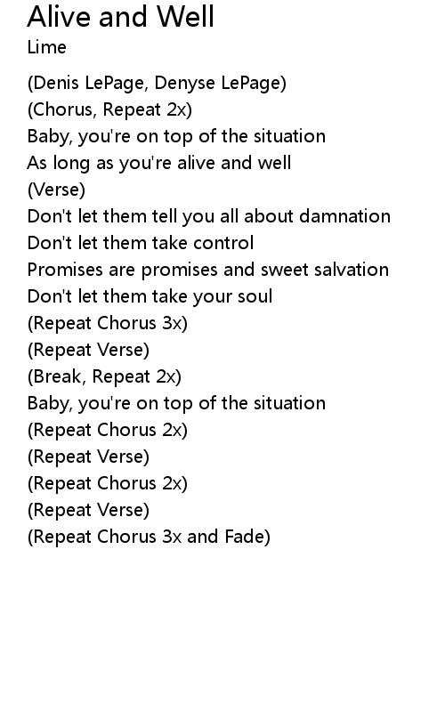 | Song | Alive and Well |