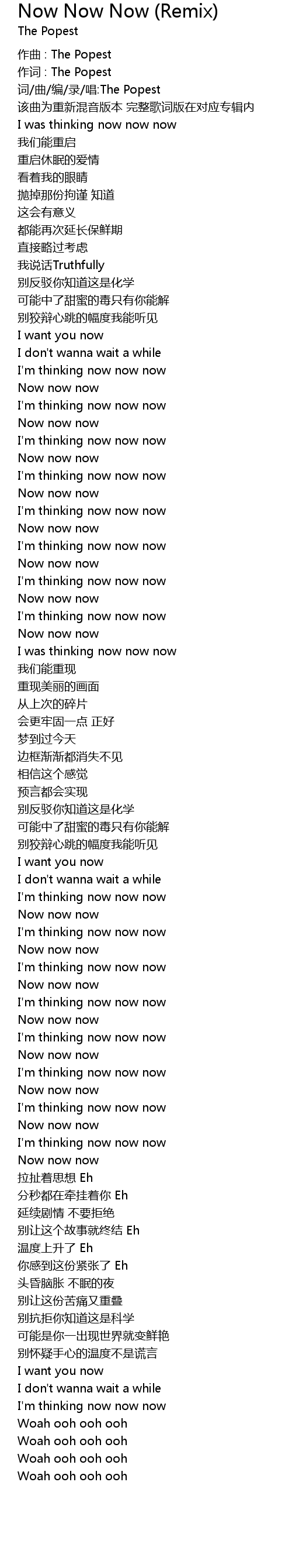 | 词/曲/编/录/唱:The Popest | |