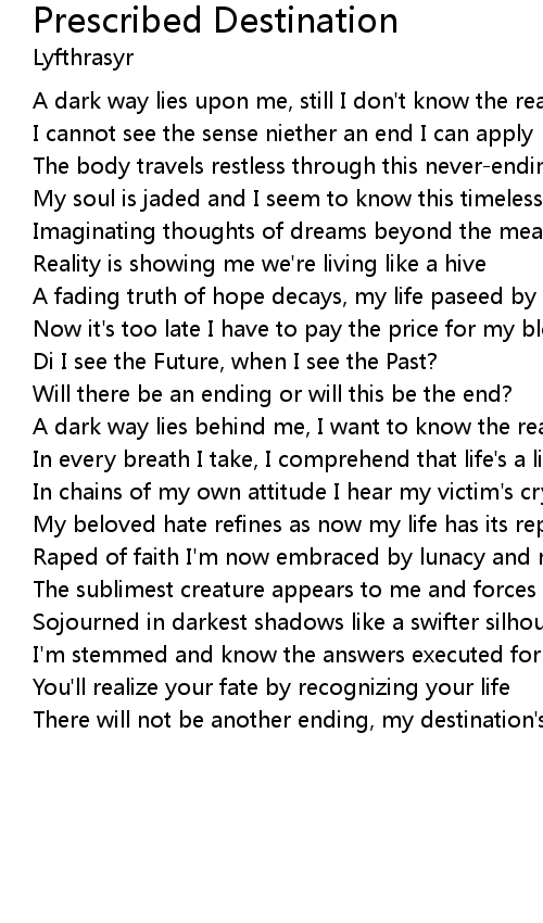 There will not be another ending, my destination's prescribed... |
