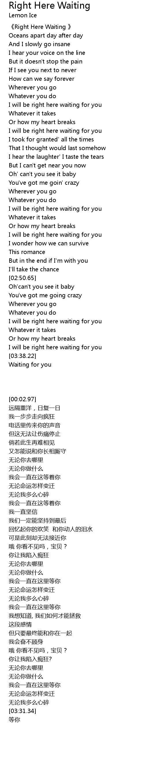 | [00:02.97] | 《Right Here Waiting 》 |