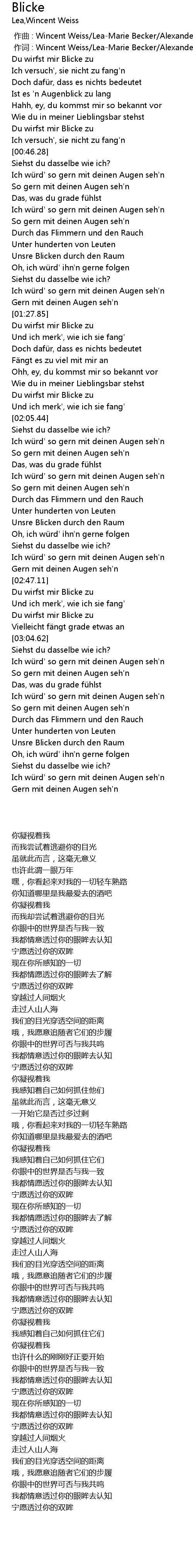 | [00:01.000] | zuo ci : Wincent Weiss LeaMarie Becker Alexander Knolle Jan Platt |