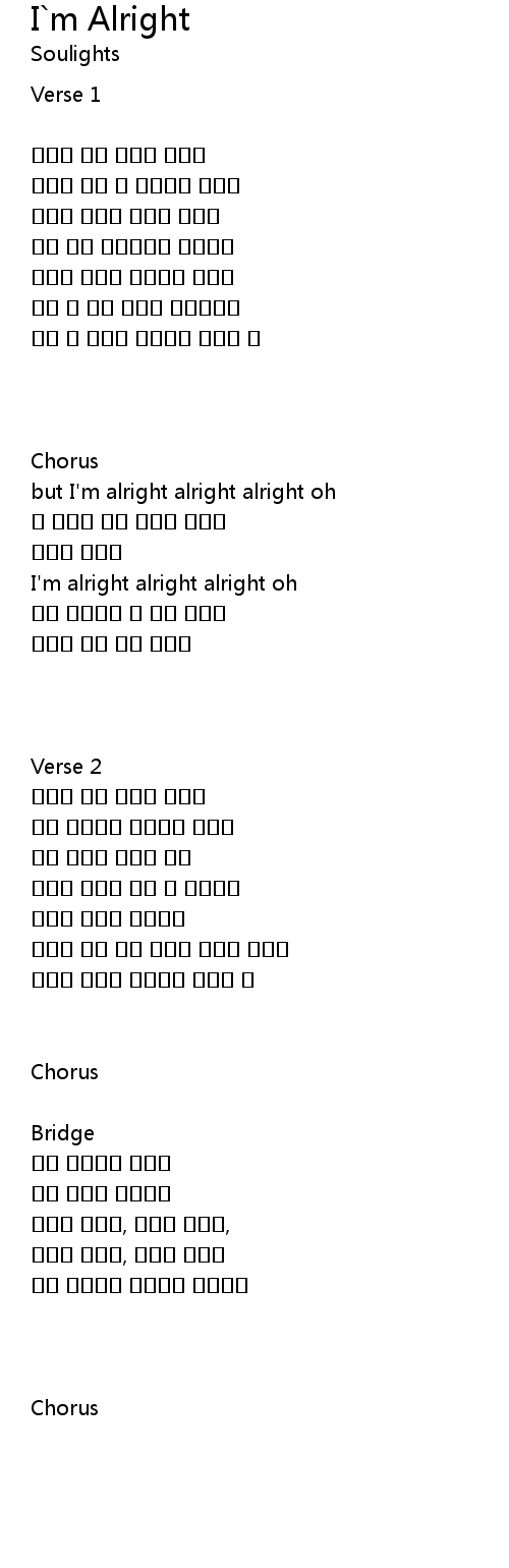 | Song | I`m Alright |