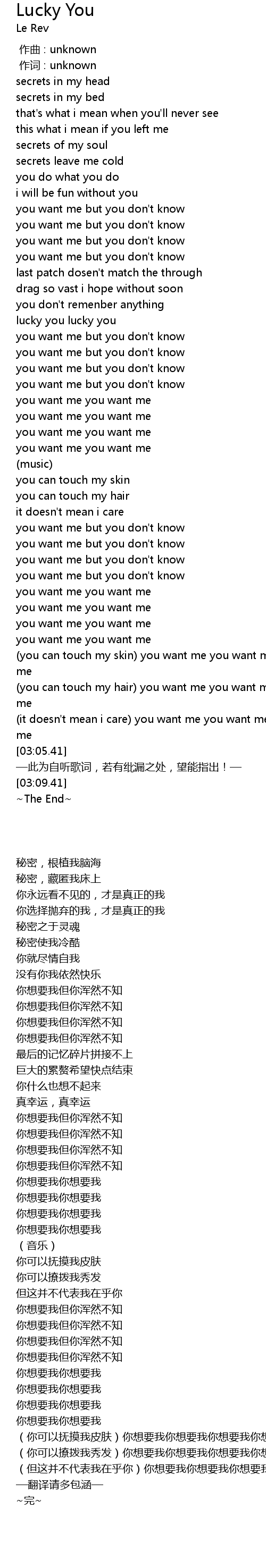 | [02:41.87] | (you can touch my skin) you want me you want me you want me you want me |