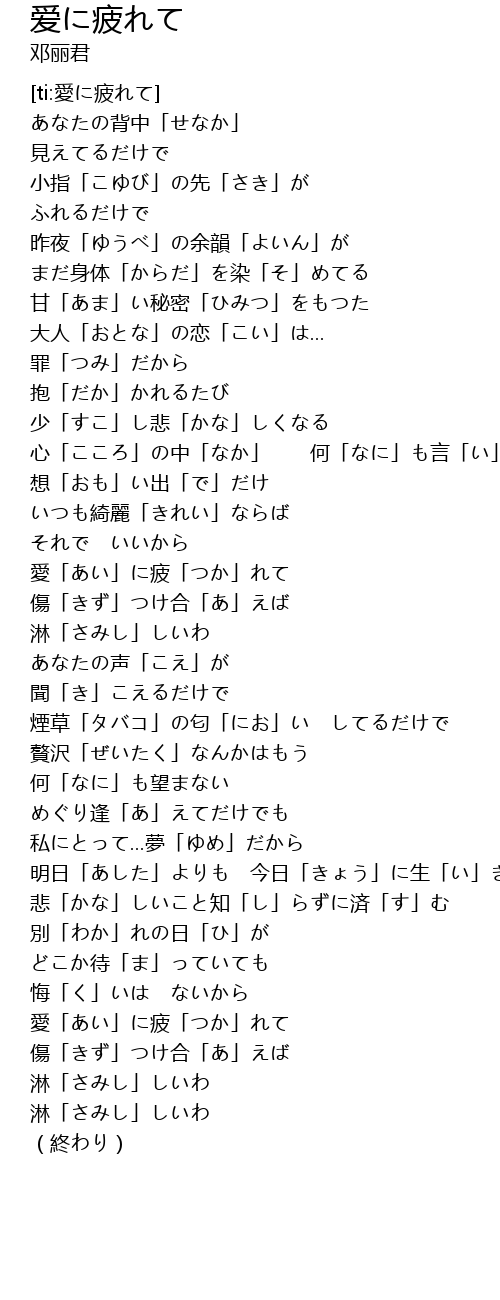 | [02:21.722] | 愛「あい」に疲「つか」れて |