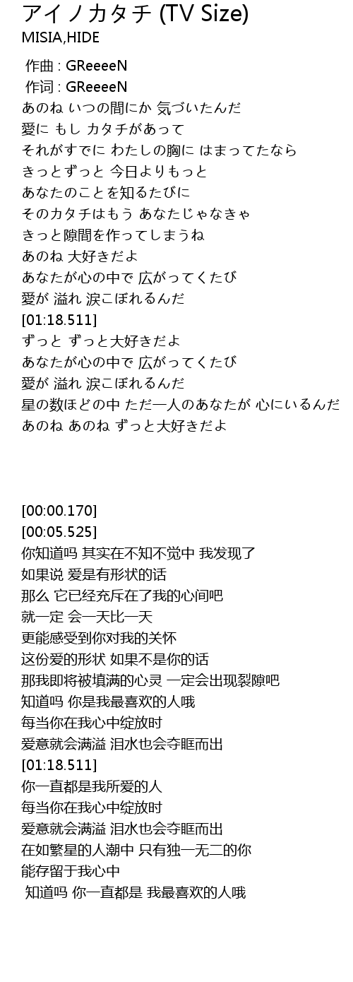 | [00:42.880] | そのカタチはもう あなたじゃなきゃ |