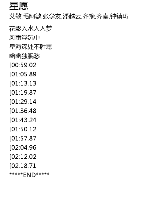 | [04:25.15][02:18.71] | 默默水东流 |