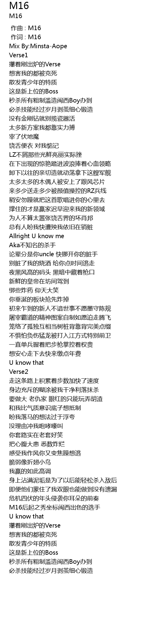 | [00:01.000] | 作词 : M16 |