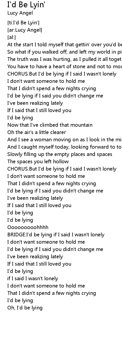 CHORUS:But I'd be lying if I said I wasn't lonely |