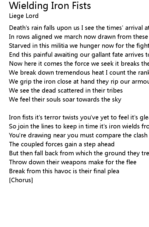 Iron fists it's terror twists you've yet to feel it's gleam insist |