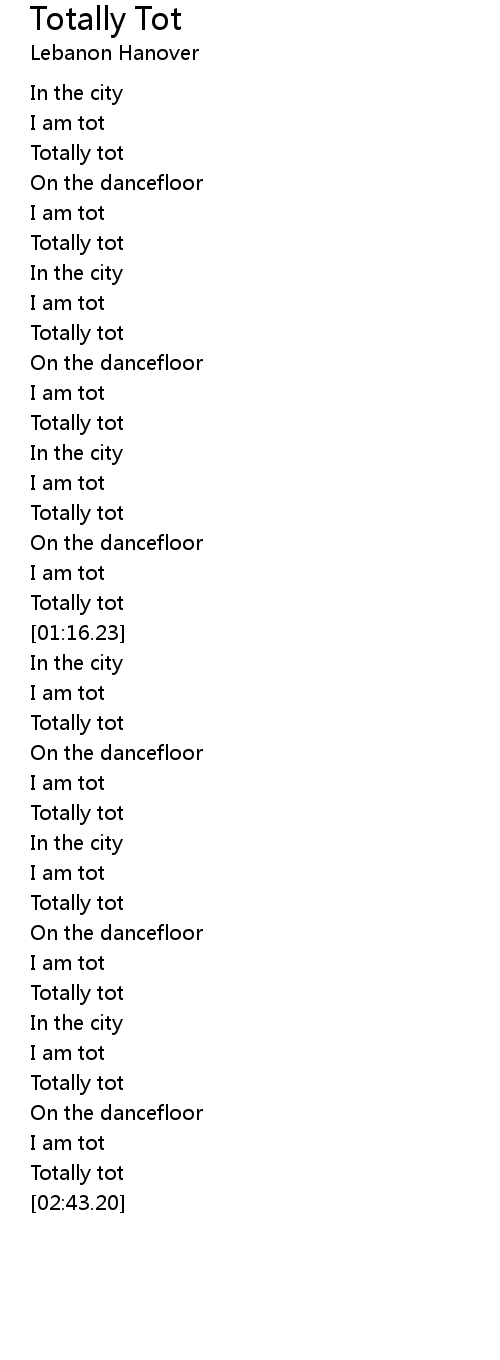 | [01:02.03] | Totally tot |