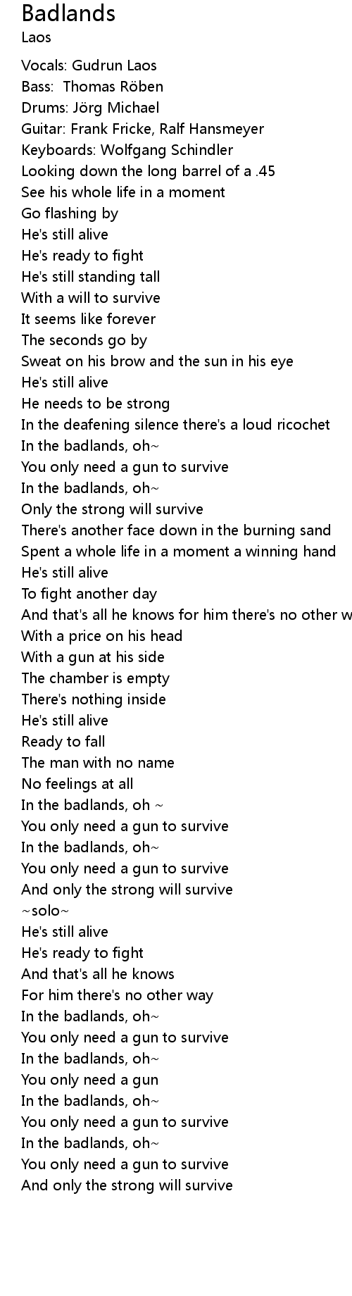 | [01:58.29] | In the badlands, oh |