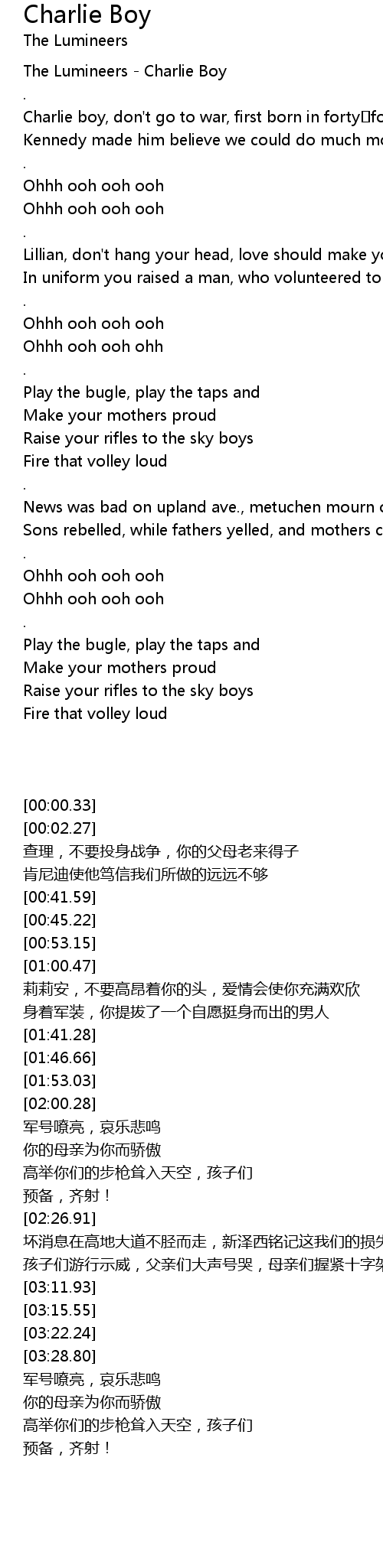 | [00:00.33] | The Lumineers Charlie Boy |