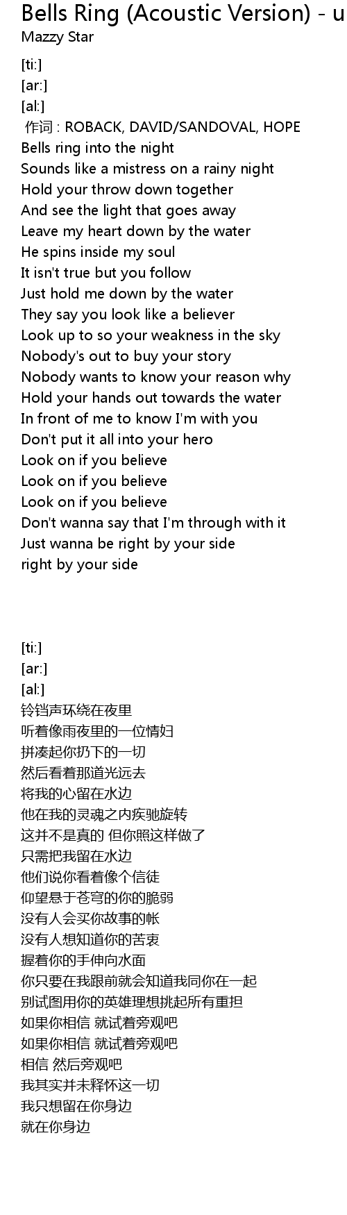 | [00:28.29] | Bells ring into the night |