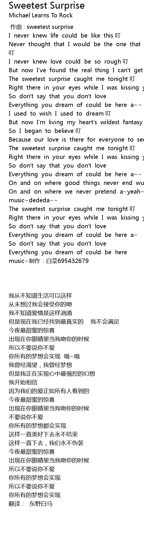 | [00:00.00] | 作曲 : sweetest surprise |