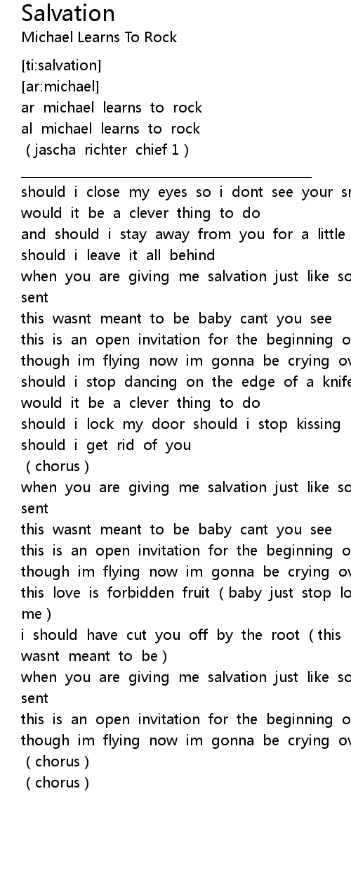 | [02:45.437] | when you are giving me salvation just like someone heaven sent |