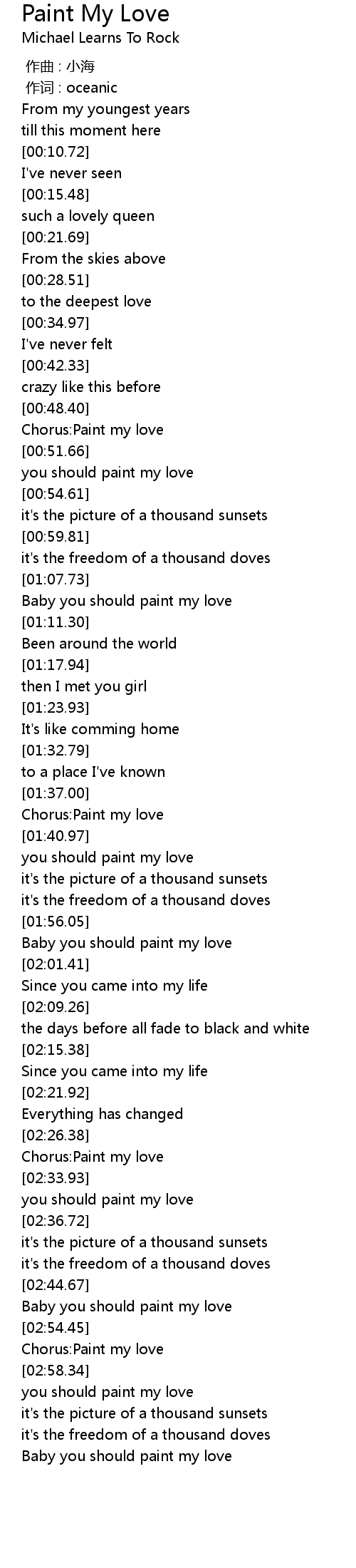 | [02:57.42] | Chorus: Paint my love |