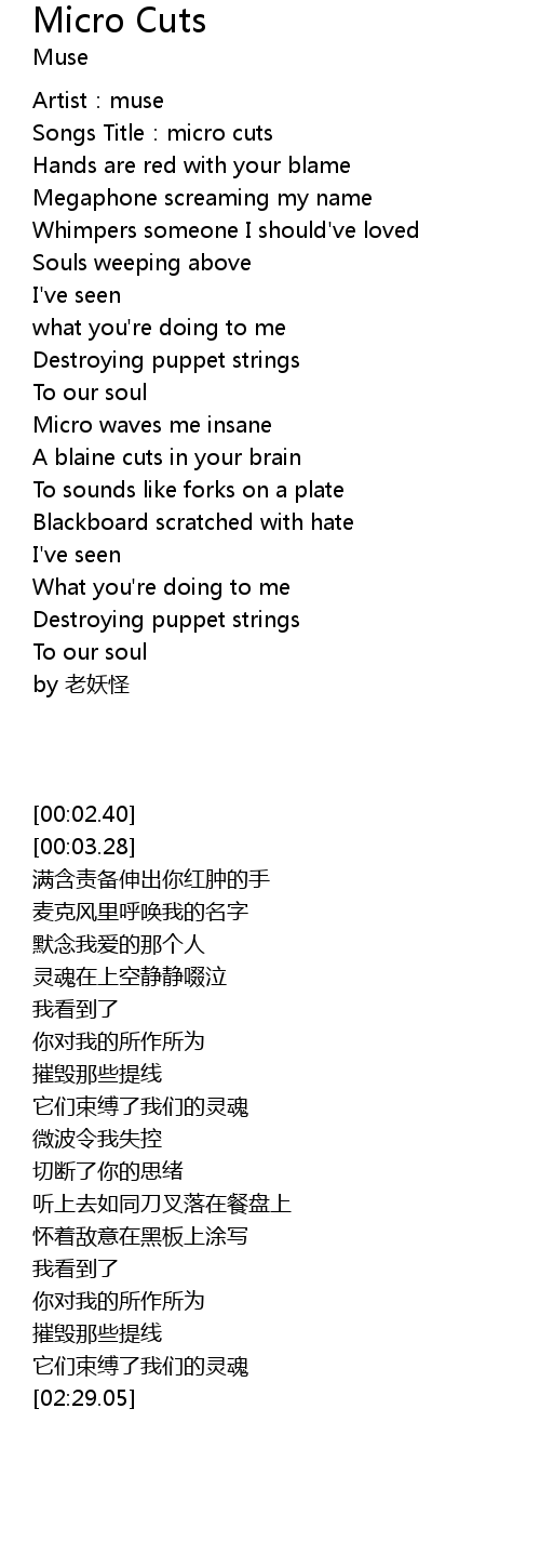 | [00:03.28] | Songs Title: micro cuts |