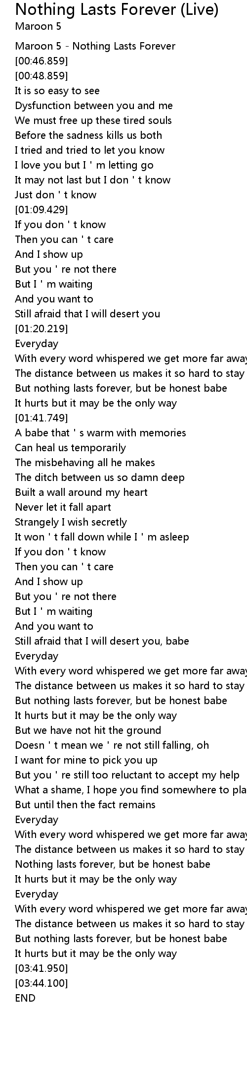 | [00:40.499] | Maroon 5 Nothing Lasts Forever |
