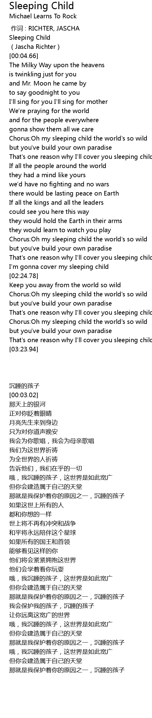 | [00:02.03] | Sleeping Child |