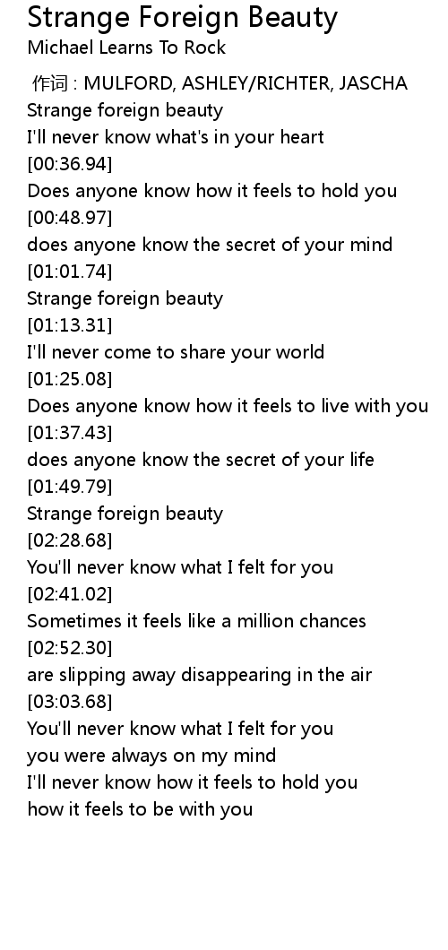 | [00:40.12] | Does anyone know how it feels to hold you |