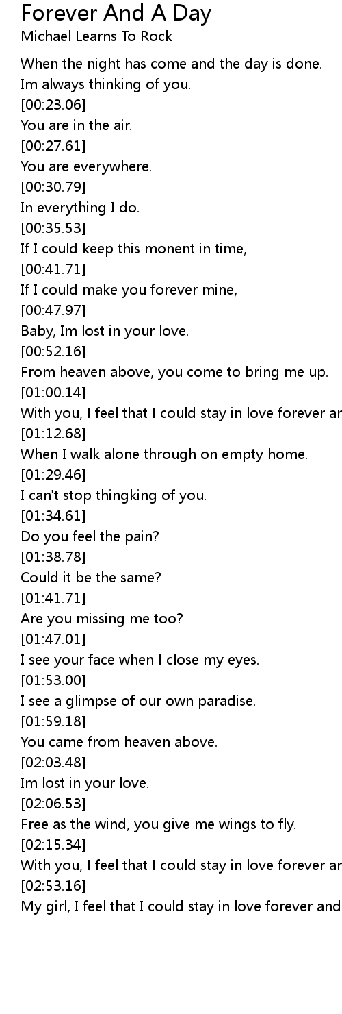 My girl, I feel that I could stay in love forever and a day. |