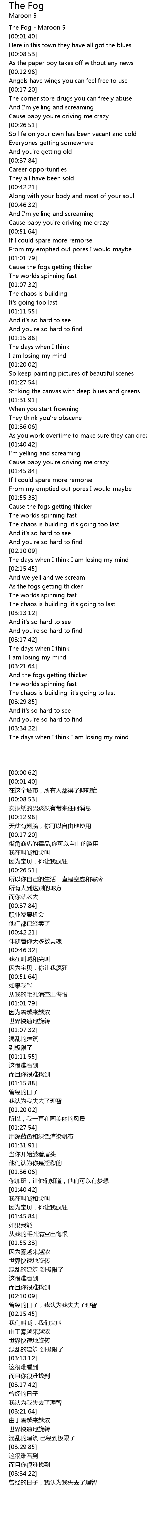 The Fog - Maroon 5 |