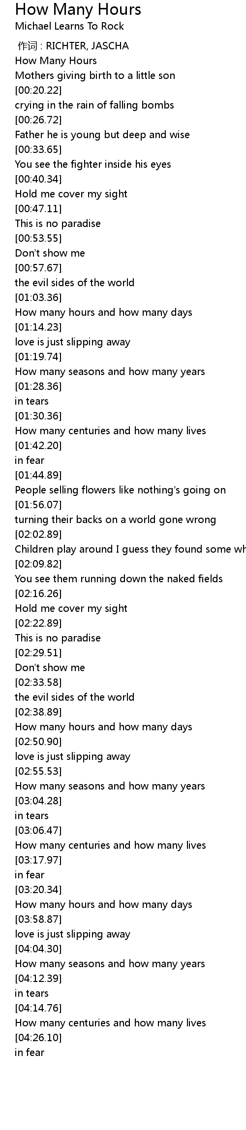 | [00:10.53] | How Many Hours |