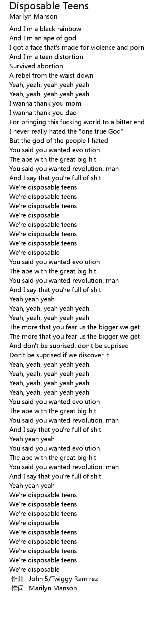 | [00:00.00] | 作词 : Marilyn Manson |