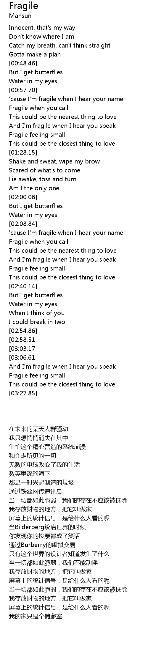 [03:29.38][02:58.51] 'cause I'm fragile when I hear your name
