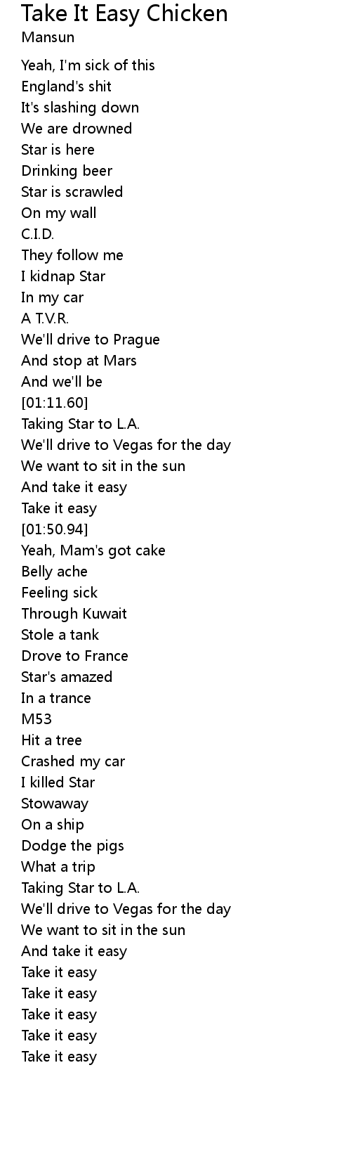 Take it easy |