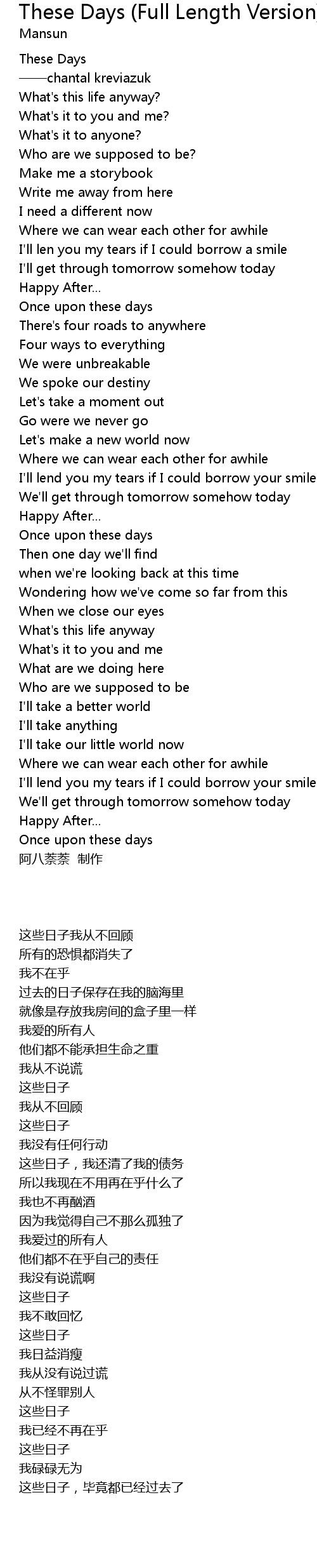 | [00:54.07] | I'll get through tomorrow somehow today |