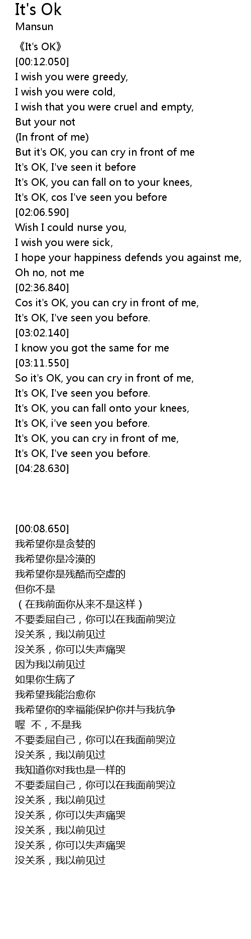 | [00:08.650] | 《It's OK》 |