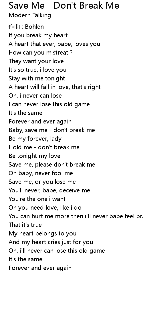 | Baby, save me don' t break me | |