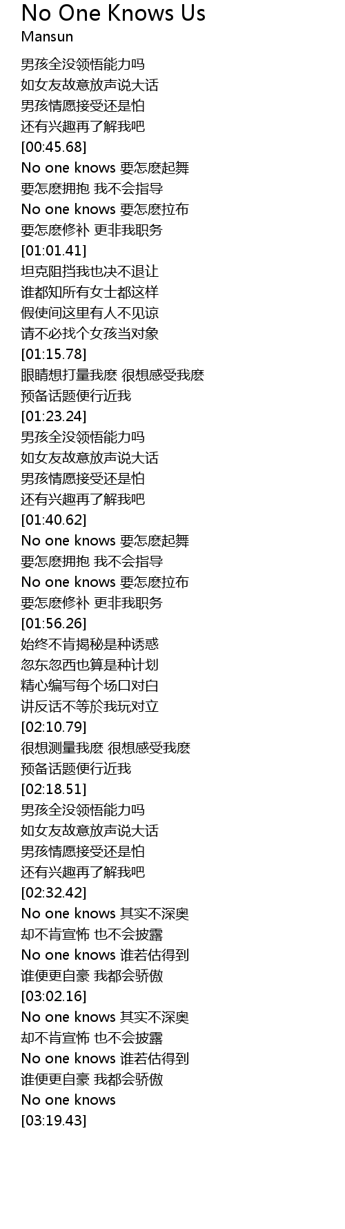 | [03:17.67] | No one knows |