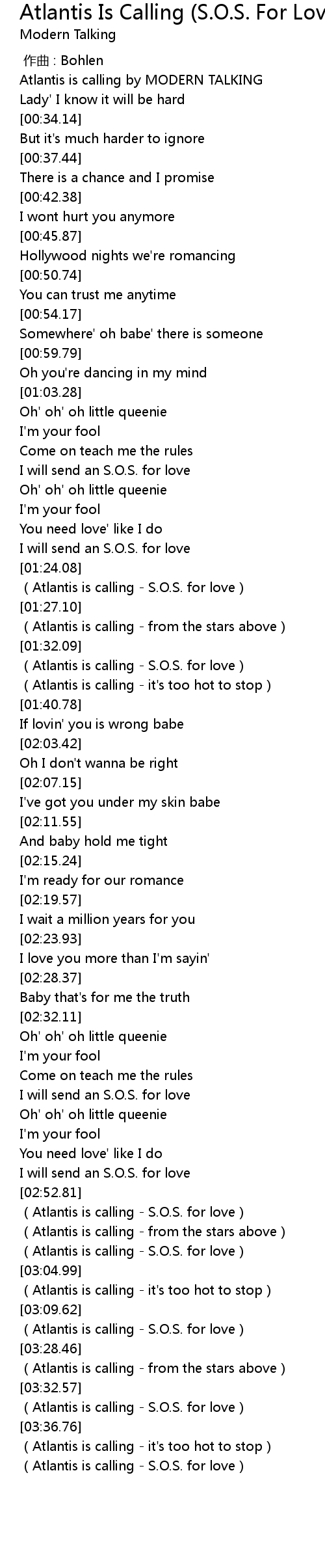 | [03:41.56] | (Atlantis is calling - S.O.S. for love) |