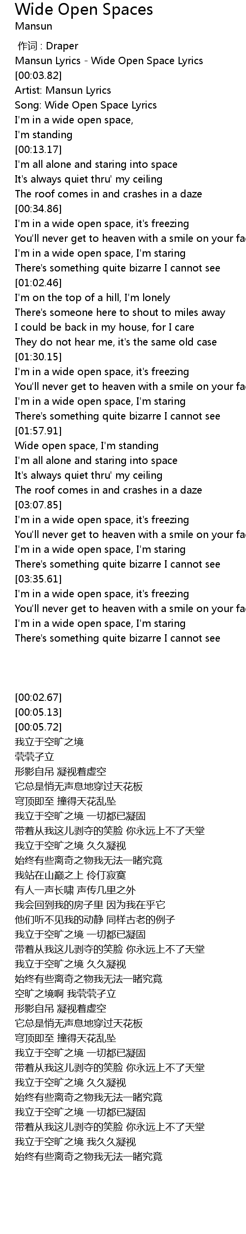 | [00:05.72] | Song: Wide Open Space Lyrics |