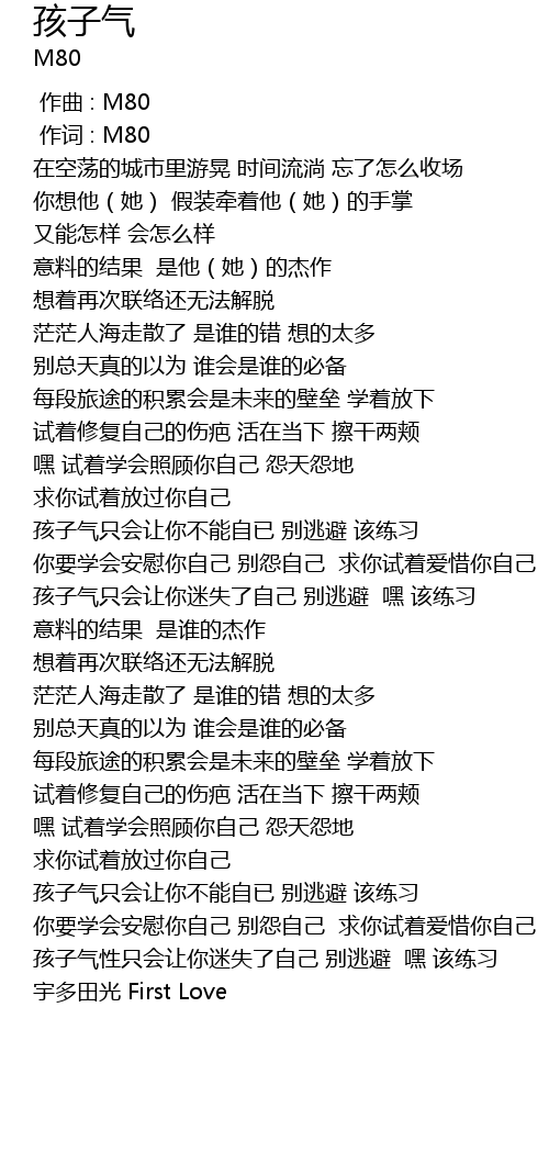 | [00:00.000] | 作曲 : M80 |