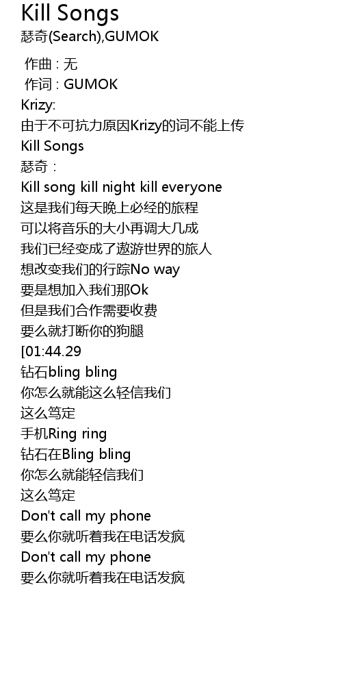 | [00:13.39] | Kill Songs |
