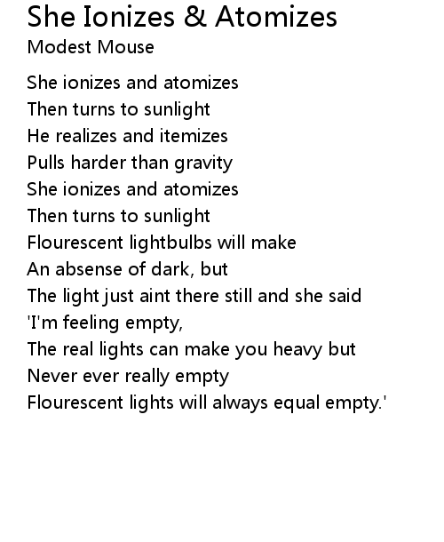 | Song | She Ionizes & Atomizes |